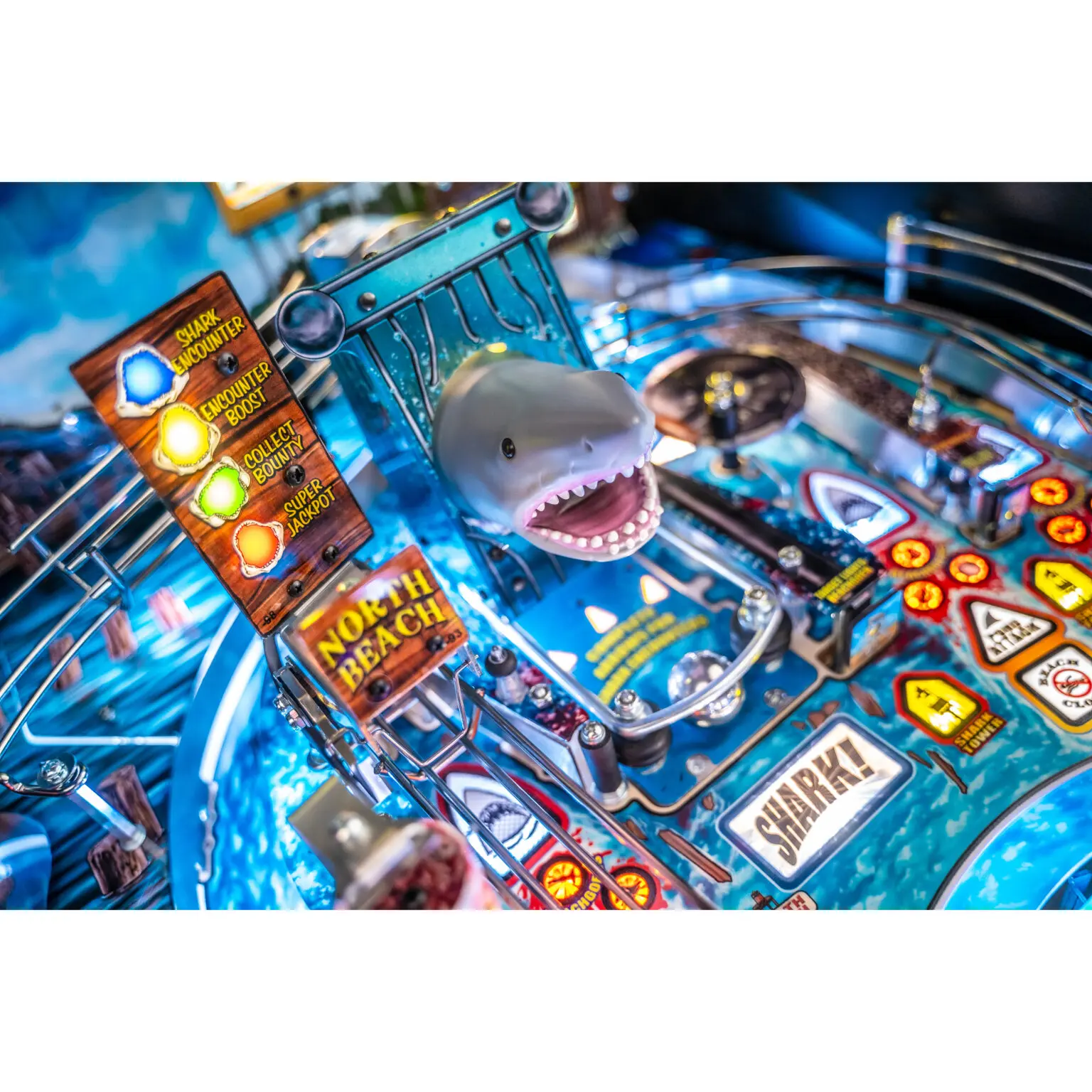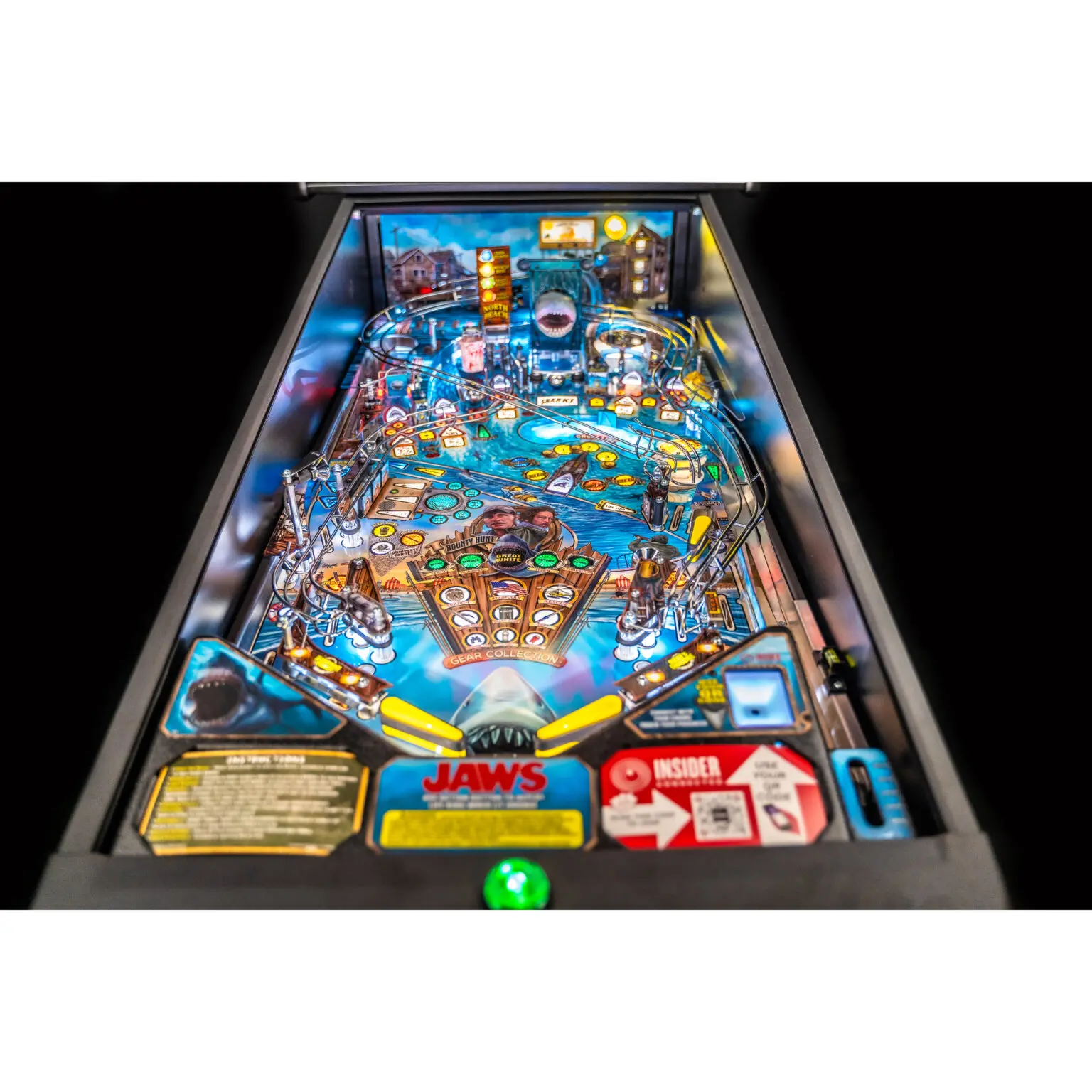 JAWS pinball games include Stern’s award-winning Insider Connected™ system, which enables players to interact with the game and a global network of players in multiple ways. Through Insider Connected, players can track progress, hunt Achievements, take on special JAWS Quests, and work on their lifetime Bounty Hunter rank.